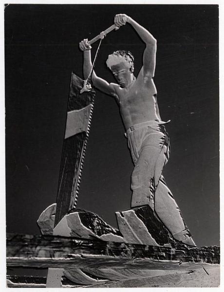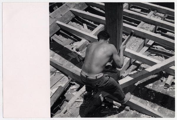 [Trabajador en sus labores de construcción en el astillero] [fotografía] Domingo Ulloa.