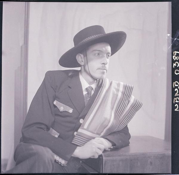 [Arturo Gatica, vestido de huaso y su guitarra] [fotografía] Alfredo Molina Lahitte.