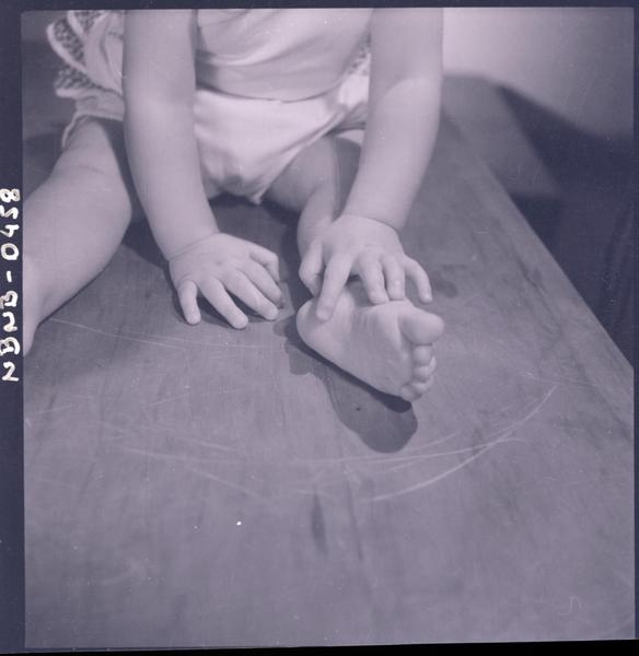 [Bebé sentado sobre una mesita] [fotografía] Ignacio Hochhäusler.