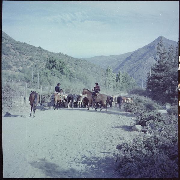 [Vista de dos trabajadores de la central hidroeléctrica en la Bocatoma del río Pilmaiquén] [fotografía] Luis Ladrón de Guevara.