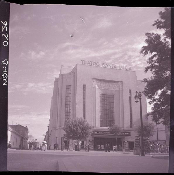 [Grupo de personas en el frontis y alrededor del teatro Santa Lucía] [fotografía] 1892-1983
