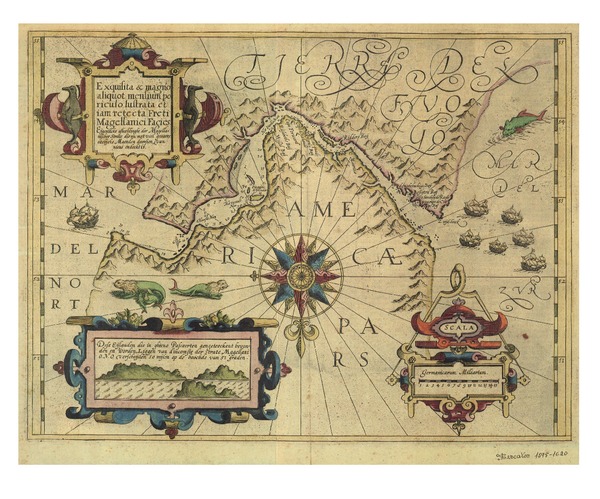 Exquisita & magno aliquot mensium periculo lustrata et iam retecta Freti Magellanici facies eijgentlicke asbeeldinghe der Magellanischer Strate die nu met veel gevaers eitelijeke Maenden doorsien van nieus ondecktis. [material cartográfico] :