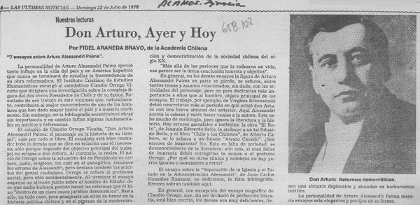 Don Arturo ayer y hoy [artículo] Fidel Araneda Bravo.