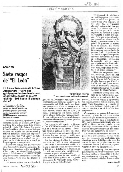 Siete ensayos para Arturo Alessandri Palma. [artículo]
