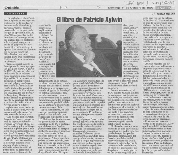 El libro de Patricio Aylwin [artículo] Sergio Muñoz.