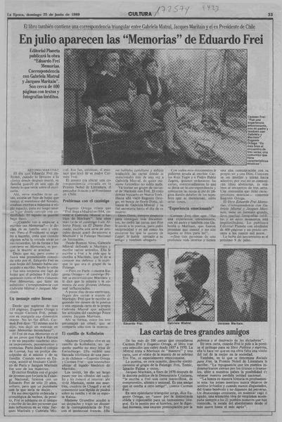 En julio aparecen las "Memorias" de Eduardo Frei [artículo] Antonio Martínez.