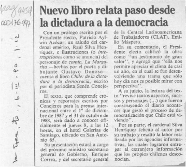 Nuevo libro relata paso desde la dictadura a la democracia [artículo].