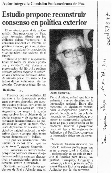 Estudio propone reconstruir consenso en política exterior [artículo].