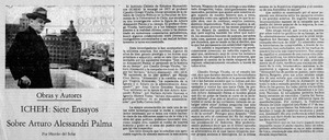 ICHEH: siete ensayos sobre Arturo Alessandri Palma [artículo] / Hernán del Solar. El Mercurio (Diario : Santiago, Chile)-- mayo 20, 1979, p. E2. retr. .
