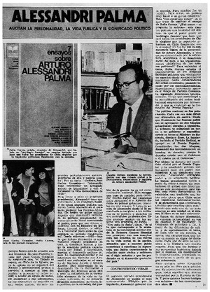 Siete ensayos para Arturo Alessandri Palma. [artículo] Cosas (Santiago, Chile)-- no. 70 (jun. 7, 1979) p. 50-51. retr. .