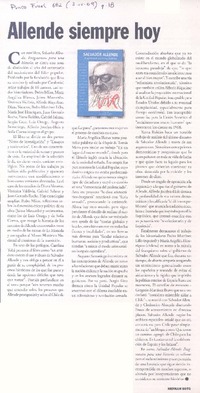 Allende siempre hoy [artículo] / Hernán Soto. Punto final (Revista, Chile)-- no. 682 (abr. 3, 2009) p. 18. .