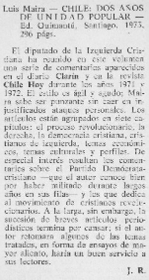 Autores chilenos - Chile: dos años de unidad popular - Maira, Luis