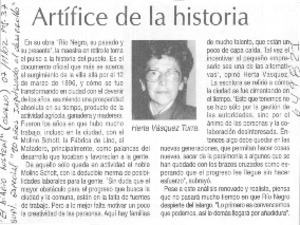 Artífice de la historia [artículo] El Diario Austral (Osorno) nov. 7, 2002, p. 37 (suplemento) retr. .