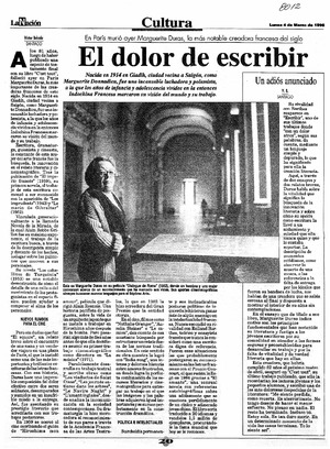 Sección Referencias Críticas. Duras, Marguerite 1996.