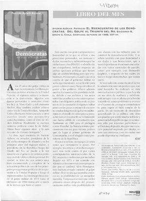 Autores chilenos - Aylwin, Patricio - Reencuentro de los demócratas : del golpe al triunfo del no