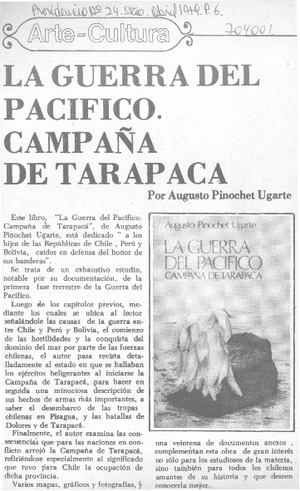 Autores chilenos - Guerra del Pacífico, campaña de Tarapacá - Pinochet Ugarte, Augusto