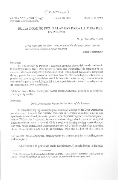 Delia Domínguez: Experiencia y canto [artículo] Ana María Cuneo M.