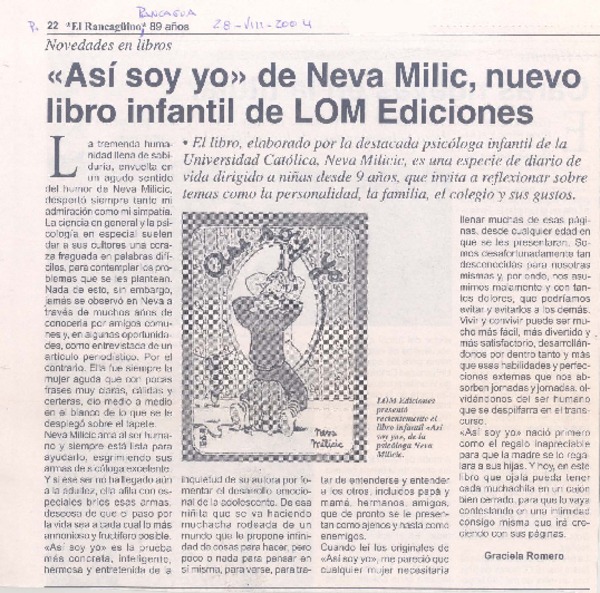 "Quiero ayudar con mi libro" [entrevista] [artículo] Cynthia O'Ryan.