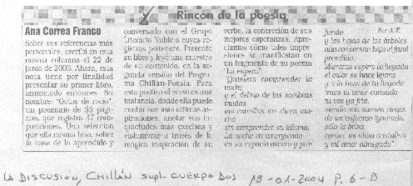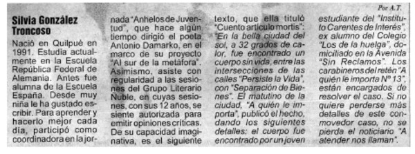 Viajera de rimas y prosas se afincó en La Granja [artículo]