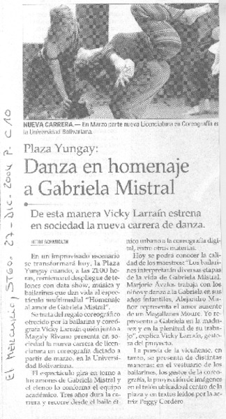 Danza en homenaje a Gabriela Mistral [artículo] Heidi Schmidlin