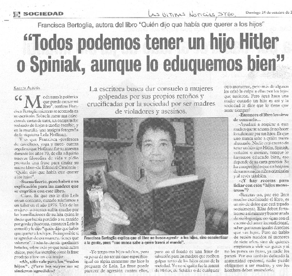 "Todos podemos tener un hijo Hitler o Spiniak, aunque lo eduquemos bien [entrevista] [artículo] Kathia Alegría