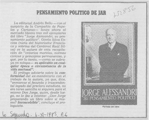 Pensamiento político de JAR. [artículo] La Segunda (Diario : Santiago, Chile)-- nov. 6, 1985, p. 6. il. .