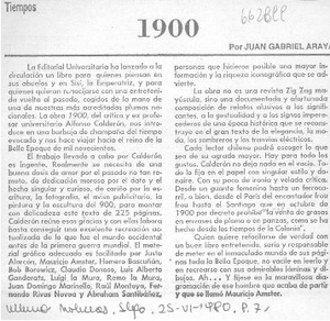 1900 [artículo] / Juan Gabriel Araya. Las Últimas Noticias (Diario : Santiago, Chile)-- jun. 25, 1980, p. 7. .