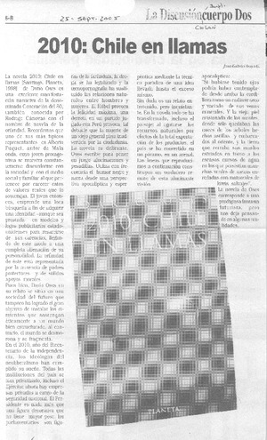 2010: Chile en llamas. [artículo] Juan Gabriel Araya G. La Discusión (Diario: Chillán, Chile)-- sept. 25, 2005, p. 6-B il. .