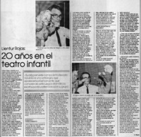 20 años en el teatro infantil : [entrevistas] [artículo] / A. Maack. El Sur (diario : Concepción, Chile)-- feb. 3, 1985, p. 3 (suplemento) retr. .