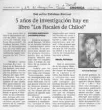 5 años de investigación hay en libro "Los fiscales de Chiloé" [artículo]. El Llanquihue. -- abr. 10, 1997, p. A9 retr. .