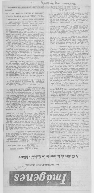 A 22 años de la muerte de Gabriela Mistral [artículo] / Roberto Flores Alvarez. El Día (diario : La Serena, Chile)-- ene. 7, 1979, p. 20. .