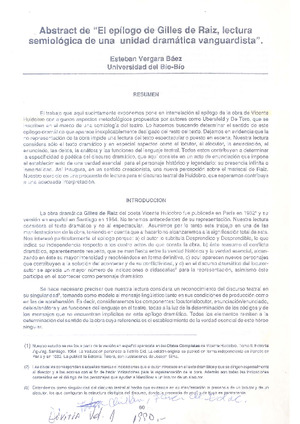 Abstract de "El epílogo de Gilles de Raiz, lectura semiológica de una unidad dramática vanguardista" [artículo] Esteban Vergara Báez.