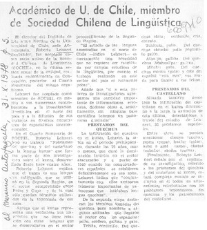 Académico de U. de Chile, miembro de Sociedad Chilena de Lingüística. [artículo] El Mercurio (Diario : Santiago, Chile)-- oct. 31, 1978, p. 5. .