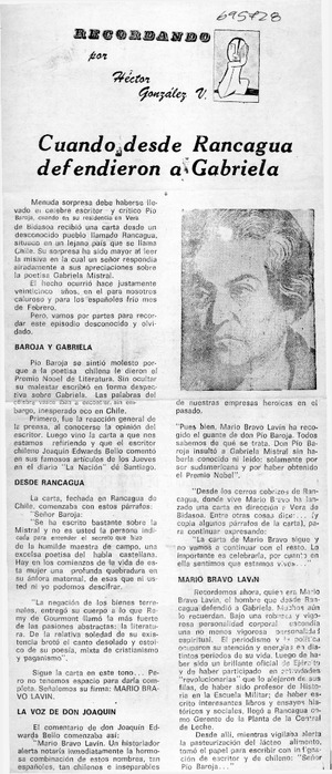 A circulación "Gabriela Mistral". [artículo] El Día (diario : La Serena, Chile)-- dic. 11, 1985, p. 10. .