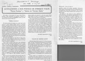 Acotaciones a dos poemas de Enrique Volpe [artículo] Eduardo Baquedano Acuña.