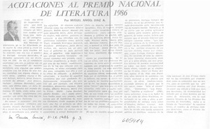 Acotaciones al Premio Nacional de Literatura 1986. [artículo] Miguel Angel Díaz A.