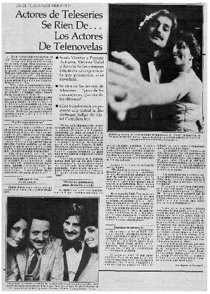 Actores de teleseries se rien de... los actores de telenovelas [artículo] / Rigoberto Carvajal. El Mercurio (Diario : Santiago, Chile)-- mar. 25, 1983, p. 5. retr. .