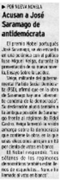 Acusan a José Saramago de antidemócrata [artículo]