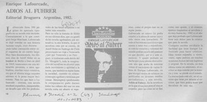 Adiós al Führer. [artículo] Pluma y Pincel (Santiago, Chile)-- no. 2 (ene. 11, 1983) p. 16. il. .