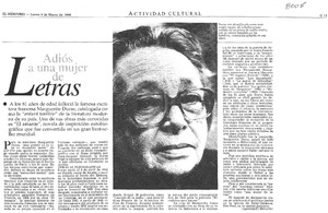 Adiós a una mujer de letras. [artículo] El Mercurio (Santiago, Chile)-- mar. 4, 1996, p. C11. retr. .