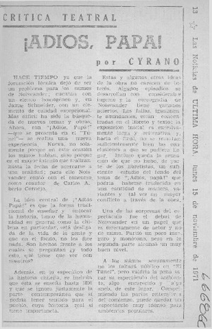 Adiós papá! [artículo] / Cyrano. Las Noticias de Ultima Hora (Santiago, Chile)-- nov. 15, 1971, p. 13. .