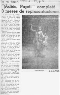 Adiós papá!" completó 3 meses de representaciones. [artículo] El Siglo (diario : Santiago, Chile)-- ene. 5, 1971, p. 15. fot. .