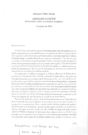 Adolfo Couve [artículo] / Adriana Valdés Budge. Academia Chilena (Revista : Chile)-- no. 76 (2003-2004) p. 219-226. .