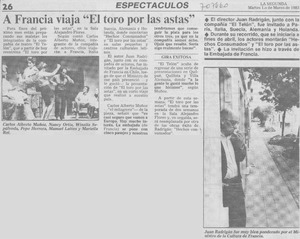 A Francia viaja "El toro por las astas". [artículo] La Segunda (Diario : Santiago, Chile)-- mar. 1, 1983, p. 26. retr. .