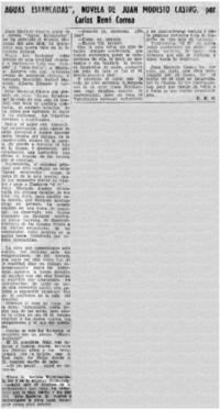 Aguas estancadas", novela por Juan Modesto Castro [artículo] / Carlos René Correa. El Diario Ilustrado (Santiago, Chile)-- jun. 2, 1940, p. 4. .