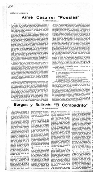 Aimé Cesaire: "Poesías" [artículo] / Hernán del Solar. El Mercurio-- mar. 22, 1970, p. 5. .