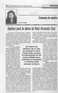 Ajedrez para la dama de Raúl Alvarado Díaz [artículo] / Sandra Rogel. La Prensa Austral. -- sept. 5, 1995, p. 2. retr. .