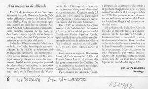 A la memoria de Allende [artículo] Edison Barría La Nación (Santiago) jun. 14, 2002, p. 6 .
