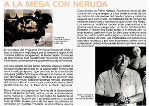 A la mesa con Neruda. [artículo] Datocosta (Revista : San Antonio, Chile)-- no. 74 (nov. 23, 2003, p. 27). retr. .