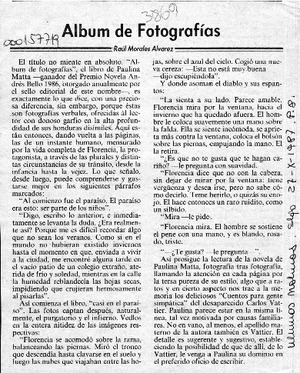 Album de fotografías [artículo] / Raúl Morales Alvarez. Las Últimas Noticias (Diario : Santiago, Chile)-- oct. 27, 1987, p. 8. .